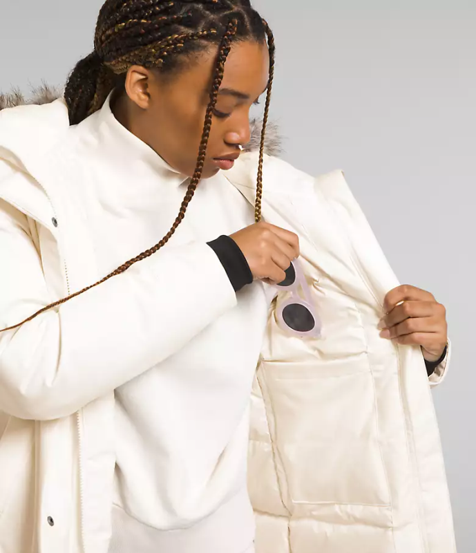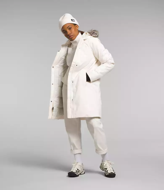 הפארקה הארקטית המעודכנת לנשים עשויה כעת באמצעות 100% בד גוף יבש ממוחזר ו-600 מילוי פוך ממוחזר לכיסוי מלא במזג אוויר קר. הוא כולל גם התאמת מותניים פנימית להתאמה הניתנת להתאמה אישית.