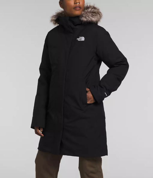 הפארקה הארקטית המעודכנת לנשים עשויה כעת באמצעות 100% בד גוף יבש ממוחזר ו-600 מילוי פוך ממוחזר לכיסוי מלא במזג אוויר קר. הוא כולל גם התאמת מותניים פנימית להתאמה הניתנת להתאמה אישית.